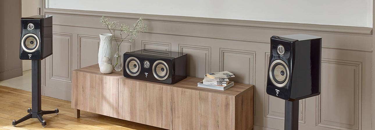 The Focal Kanta stand is available, as an option, in a smaller size (adjustable height of 16.5 to 17.5 inches – 424 to 450 mm) for the center speaker, which can be easily installed below the screen horizontally or vertically at the sides of it, and either at the front or back of the room.