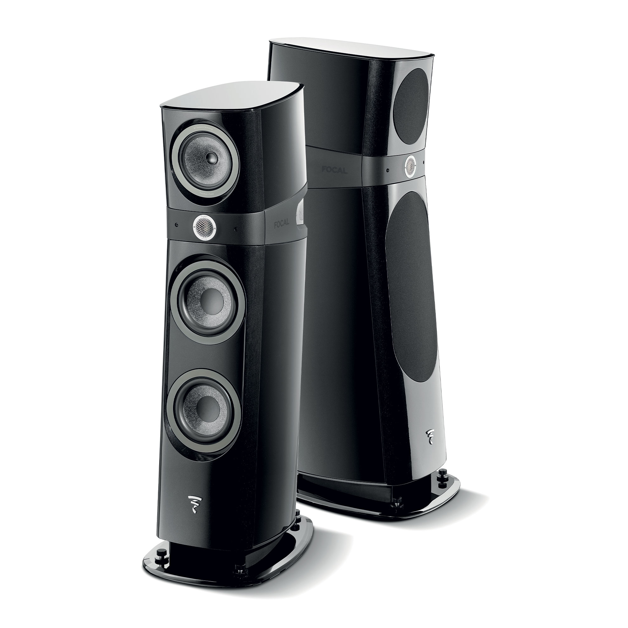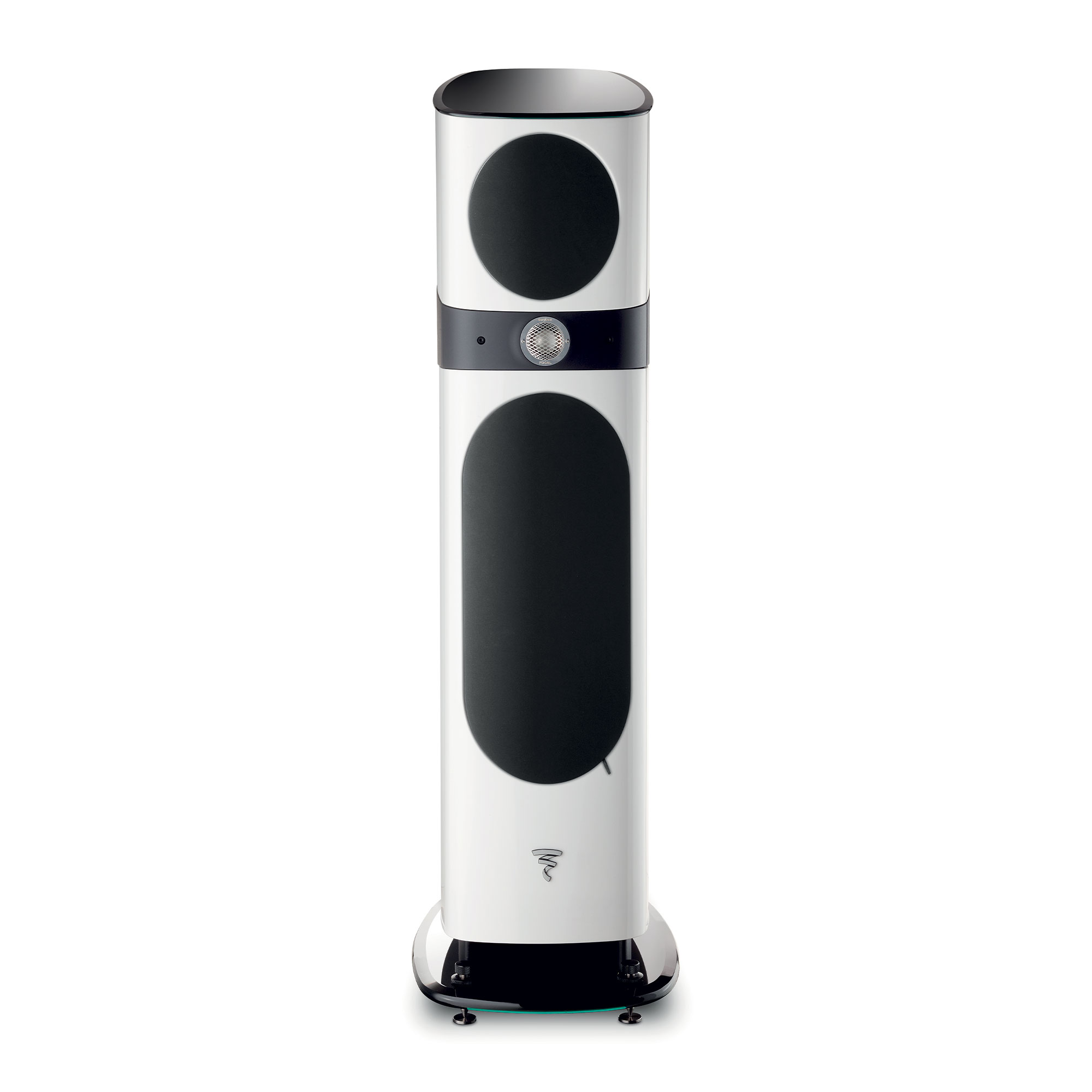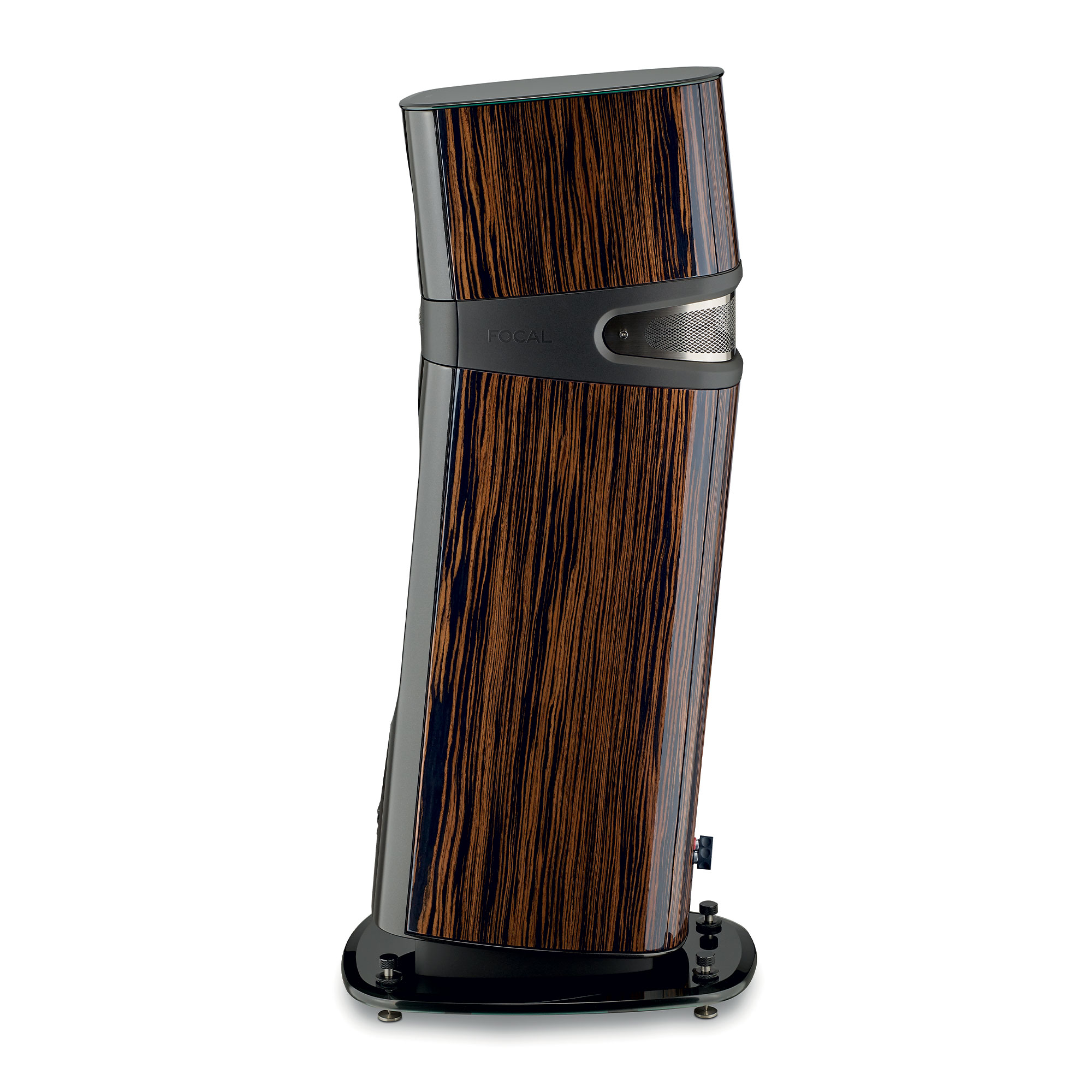The architecture of the loudspeaker is articulated around the intermediate piece. Injected with polyurethane, this element allows the top and bottom cabinets to be tilted for “Focus Time”, ensuring perfect acoustic convergence of the channels at the listening point.