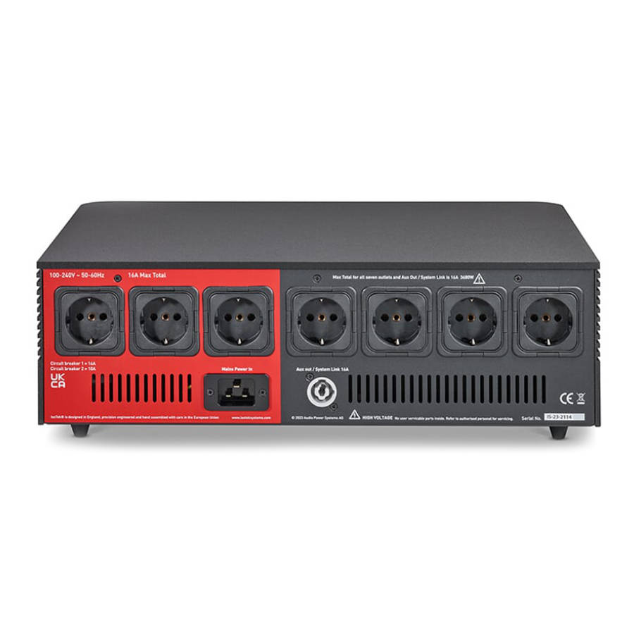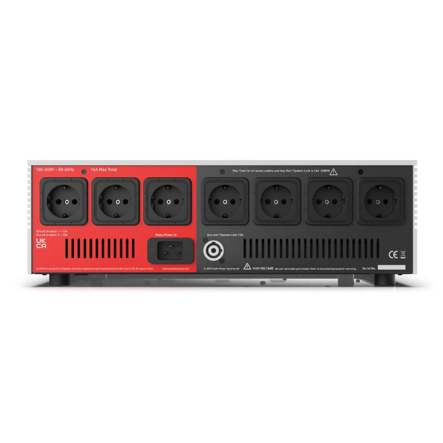 V5 Sigmas is a significant step forward from its EVO3 predecessor. Now a seven-way mains power cleaning product featuring three high-current outlets that utilizes a lighter version of the V5 Titan’s Direct-Coupled circuit to provide ultra-high current low impedance power for amplifiers, subwoofers, active loudspeakers, or nowadays TVs and projectors. The four remaining output sockets are medium-current for source components.