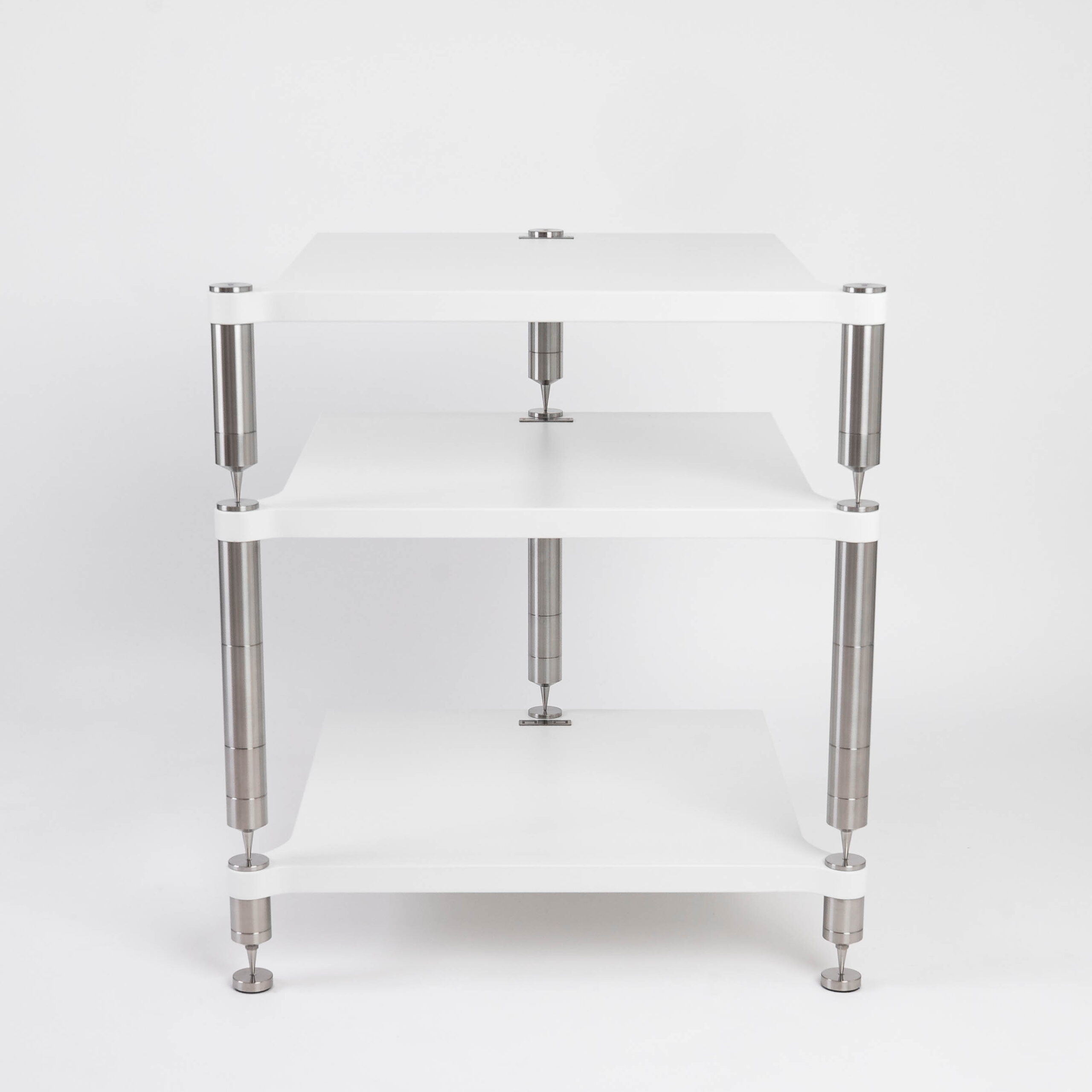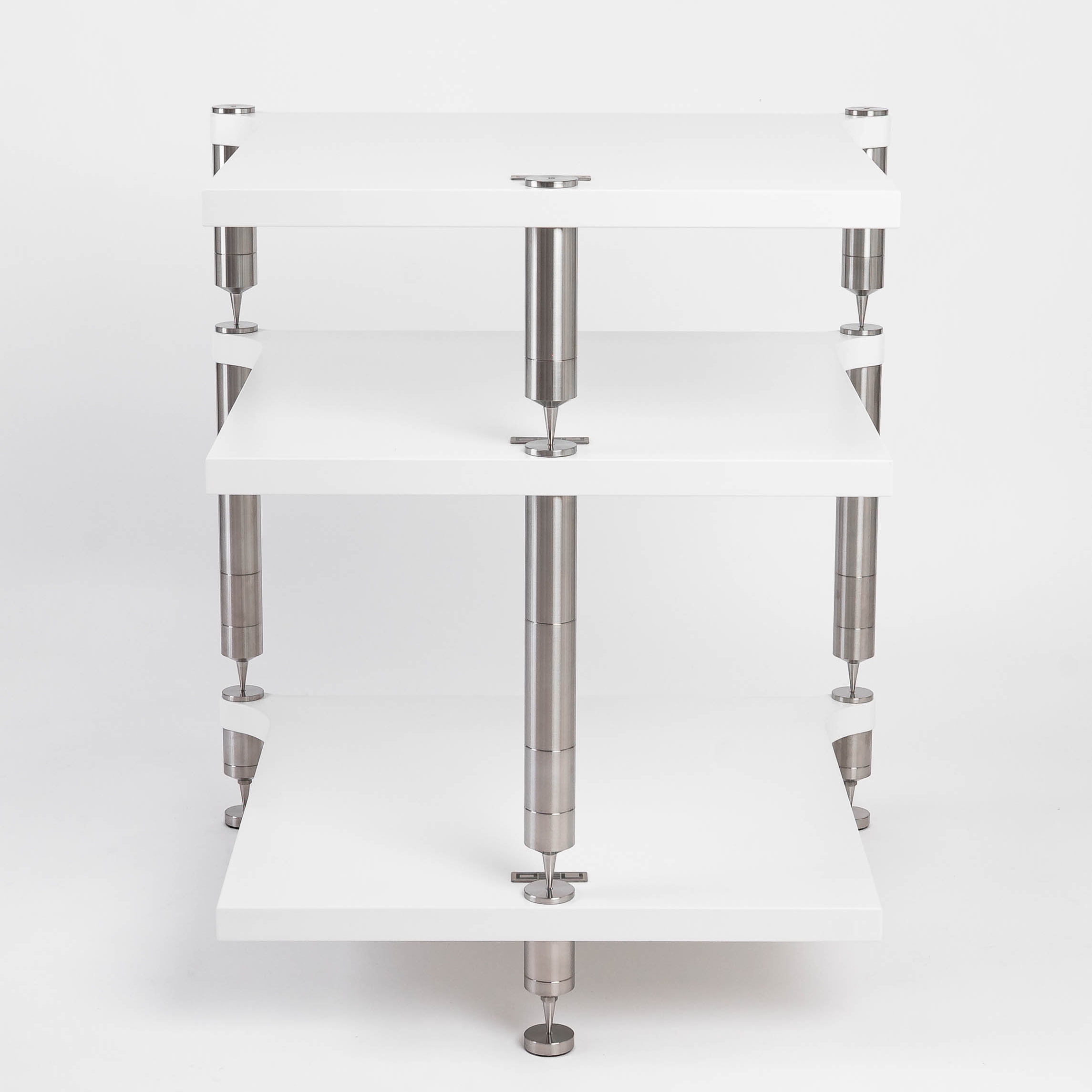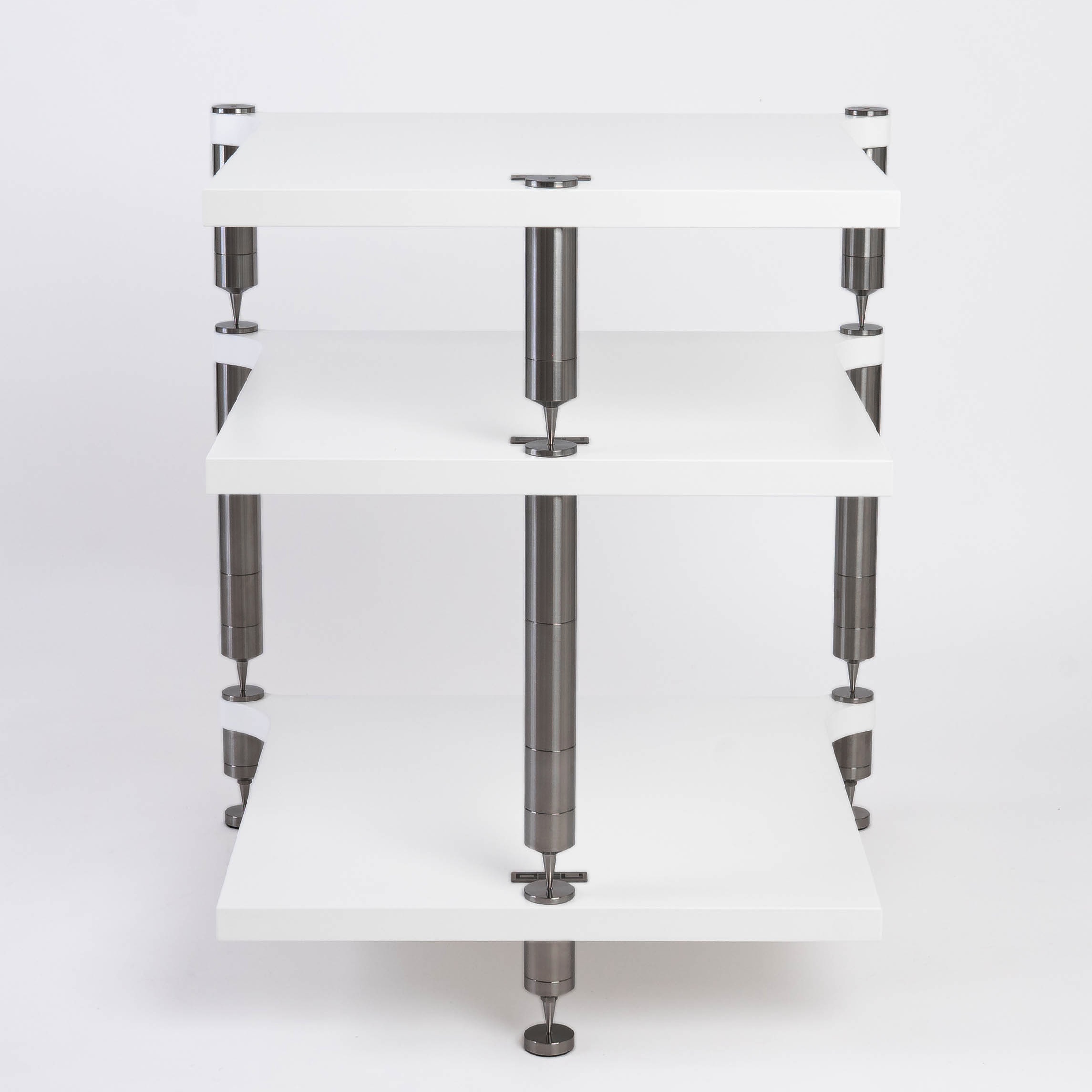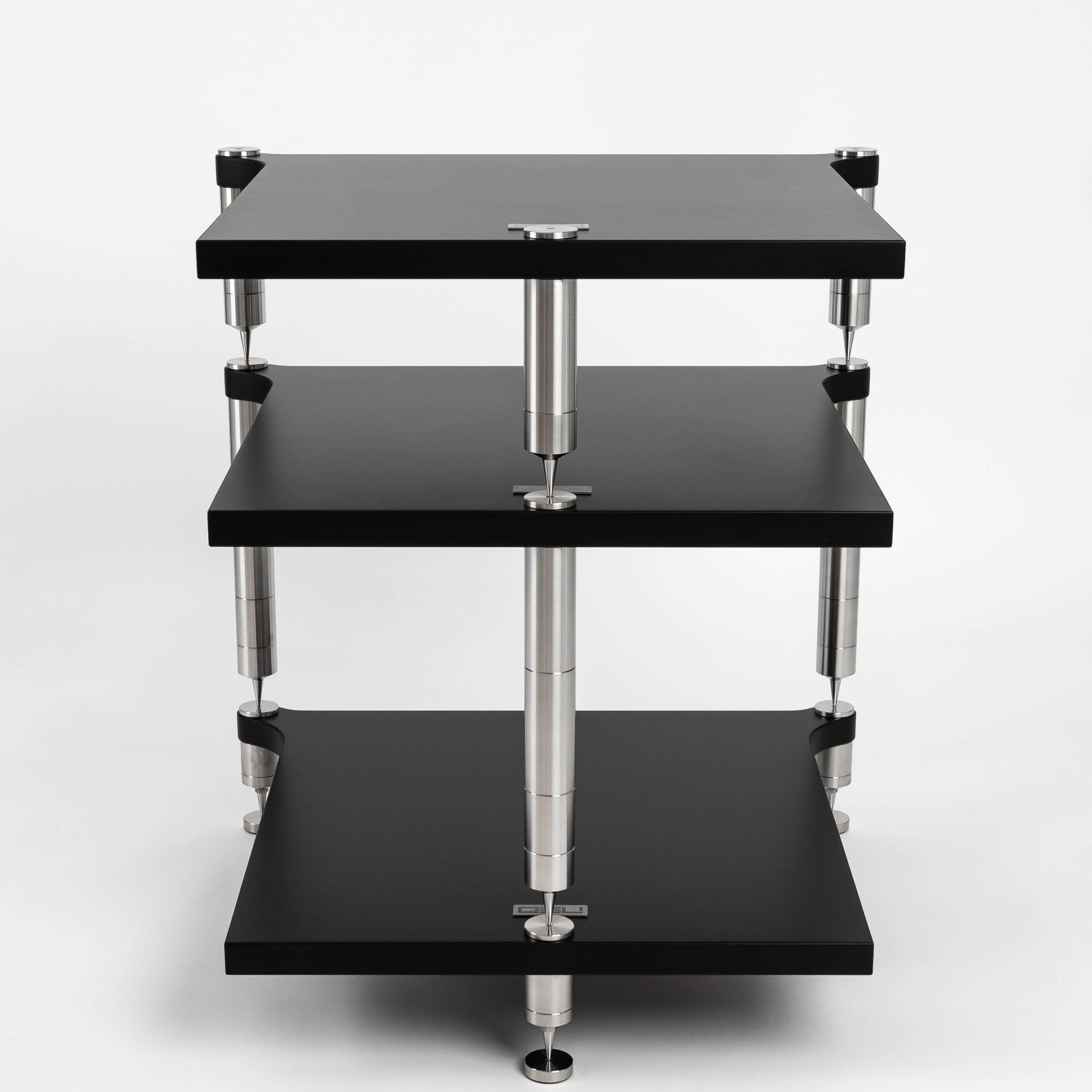 TRIPOD consists of a bottom base shelf fitted with three spikes. To the basic part additional shelves are attacked subsequently fitted with robust steel legs ending with anti-resonance spikes in five height versions.