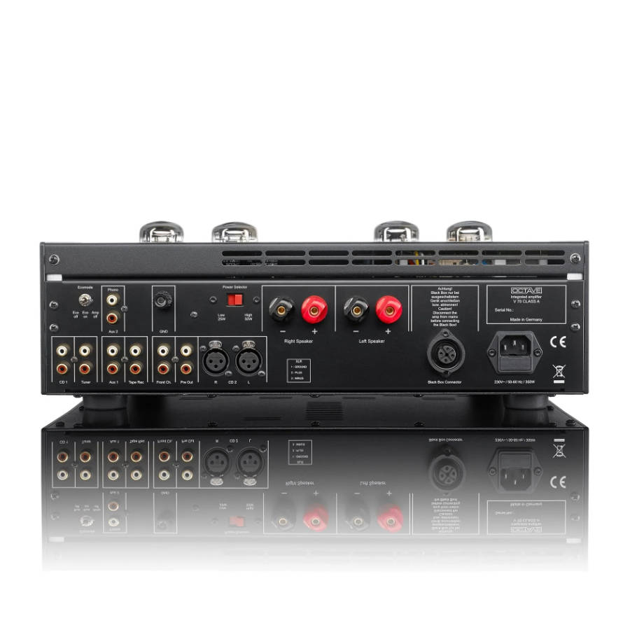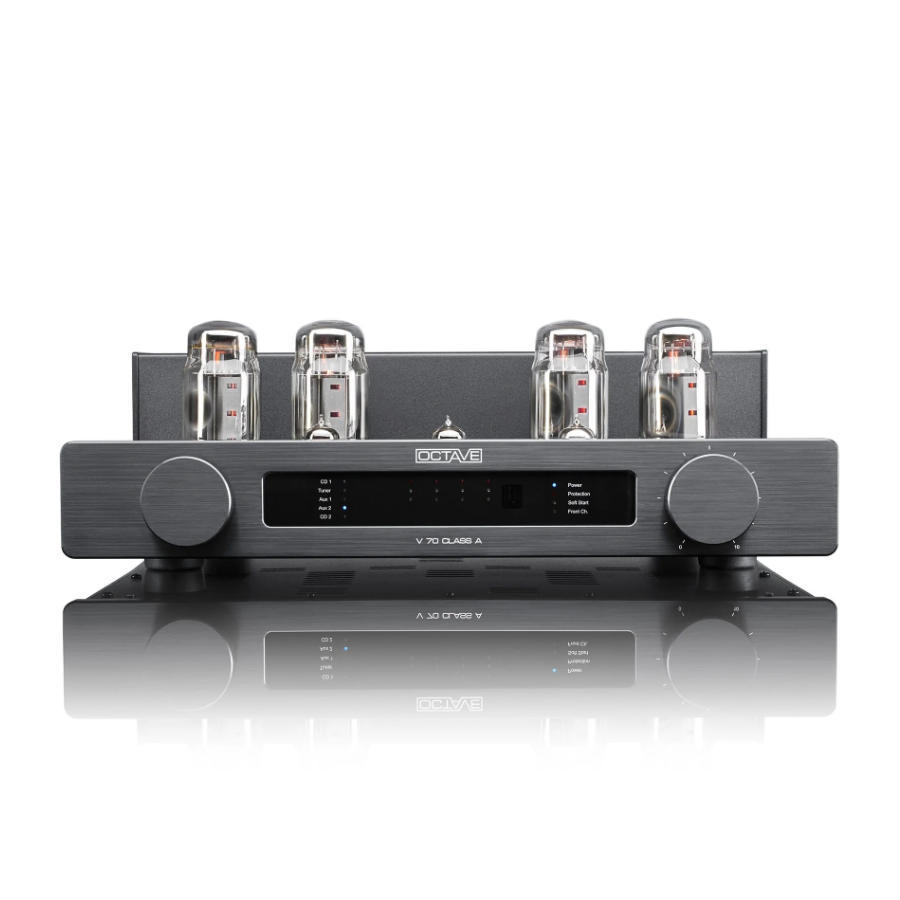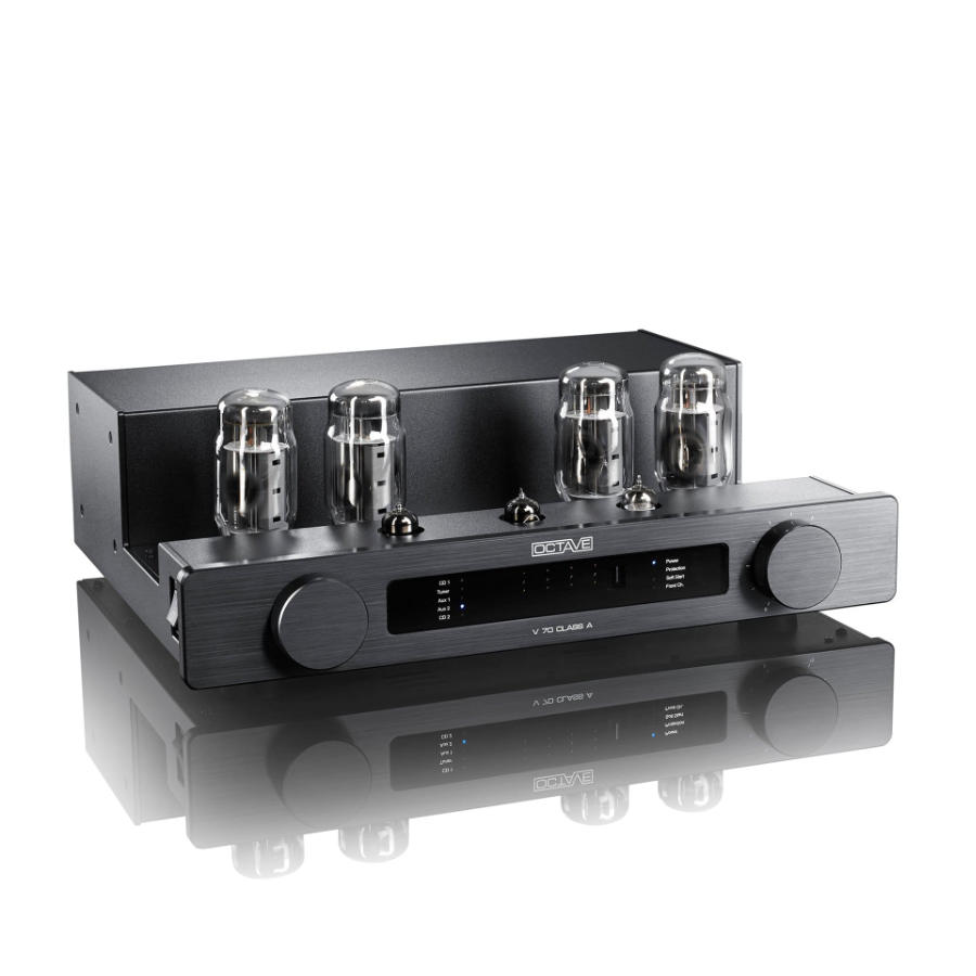 Octave typical measures, such as the power management with electronic monitoring are integrated as well as the ECO mode, the modern home theater bypass circuit and the useful regulated preamp output (for direct connection of a subwoofer). Our special power supply technology protects the amplifier against various types of mains interference. Mains fluctuations and high-frequency mains disturbances do not cause any sonic deterioration. With the V 70 Class A we have the line of the legendary powerful Octave integrated amplifiers extended by a highly musical Class A concept.