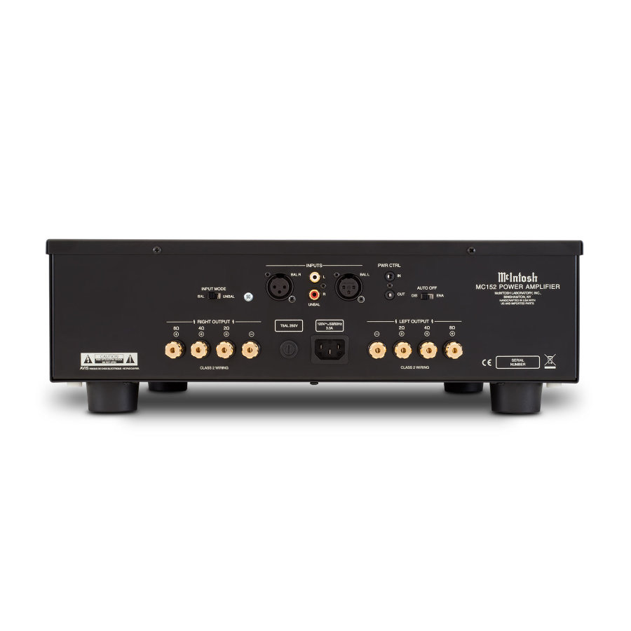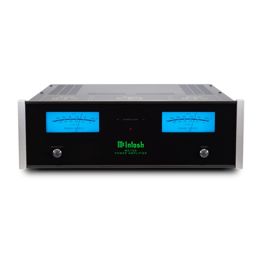 The McIntosh MC152 stereo power amplifier delivers 150 Watts of power into two channels at 2, 4 or 8 Ohms. Both balanced and unbalanced inputs are included for connecting your preamplifier. Our smallest current model solid state stereo amplifier in terms of power output, the MC152 is perfect for modest sized systems where higher power output levels are not needed or in home theaters to power surround channels.