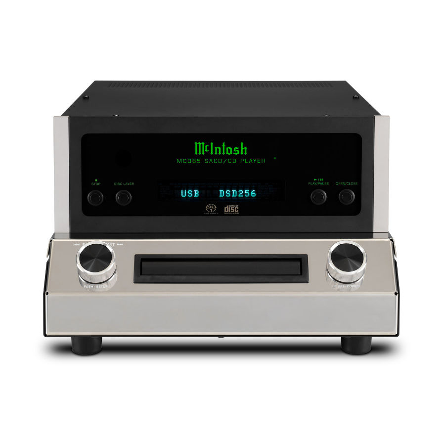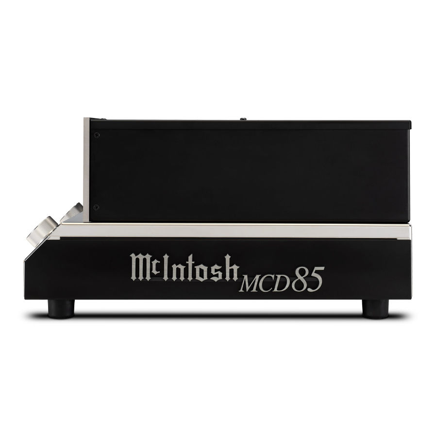 The MCD85 employs 2x read speed, meaning all discs placed in its sturdy die-cast tray are read at higher speeds, allowing their data to be stored in a buffer memory for better error correction and tracking. The tray features a new, custom front beveled nose to match the angle of the chassis and provides smooth and quiet disc handling. Disc reading is performed in the high-quality disc mechanism by a twin laser optical pickup that uses a single objective lens with two laser units, with each employing different wavelengths that are optimized for SACD and CD playback. Power Control and data ports allow for seamless integration with other McIntosh home audio system components.
