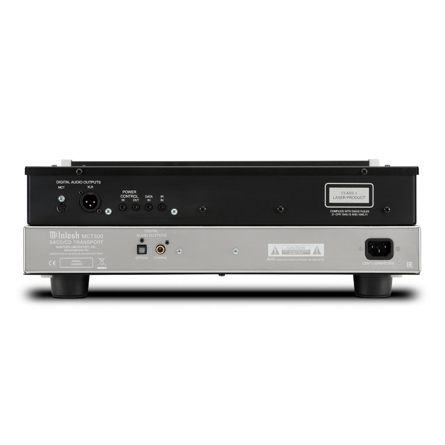 For SACD playback, the MCT500’s proprietary MCT output needs to be connected (via the included cable) to a McIntosh product with an MCT input. This includes the D1100, C53, C2700,C49 and D150 preamplifiers, MA9500, MA8950, MA7200 or MA5300 integrated amplifiers or MAC7200 receiver. When the MCT500 is connected to one of these devices, a secure digital connection is created, allowing for the playback of the high definition audio found on SACDs. Regular CDs can also be played over the MCT connection.