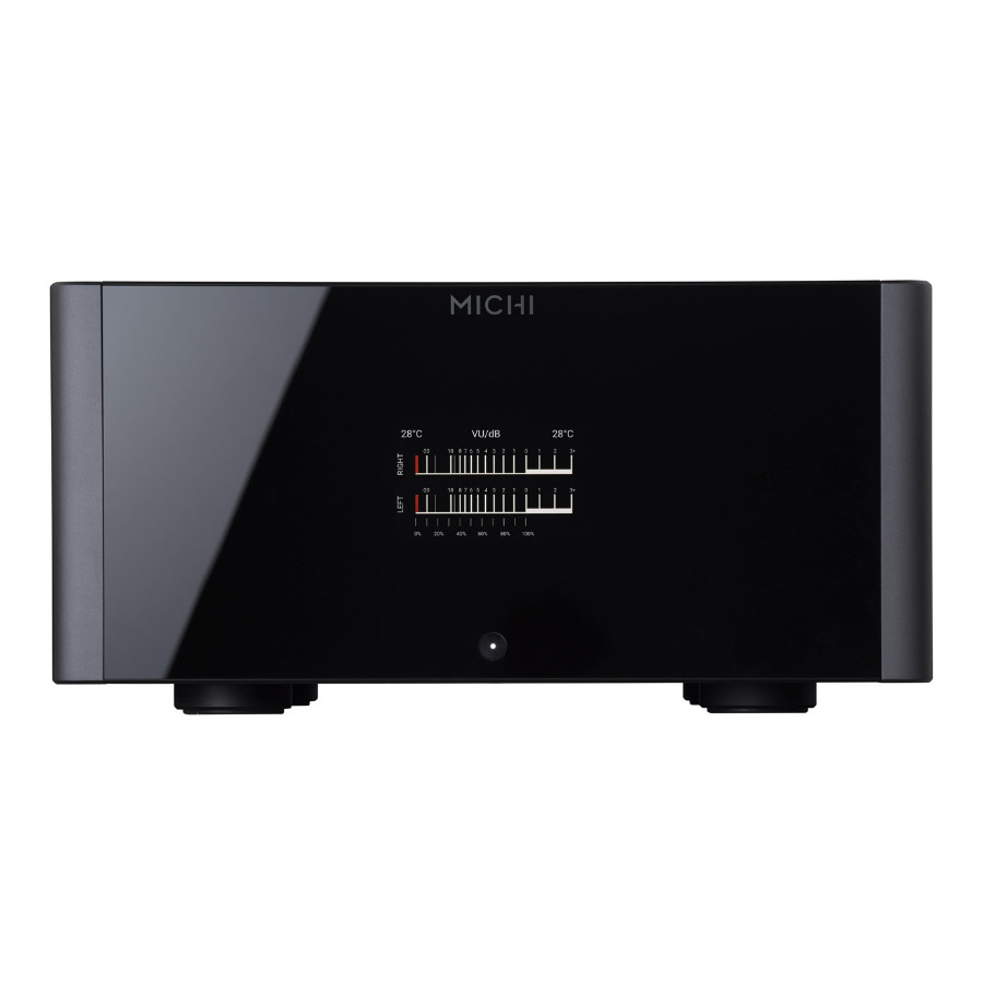 The Michi S5 Stereo Amplifier delivers 500 watts per channel into 8 ohms loads with best in class audio performance. The dual monoblock design includes twin, oversized, in-house manufactured toroidal transformers for exceptional bass energy while maintaining control and precision of the finest detail all packaged in an elegant design.