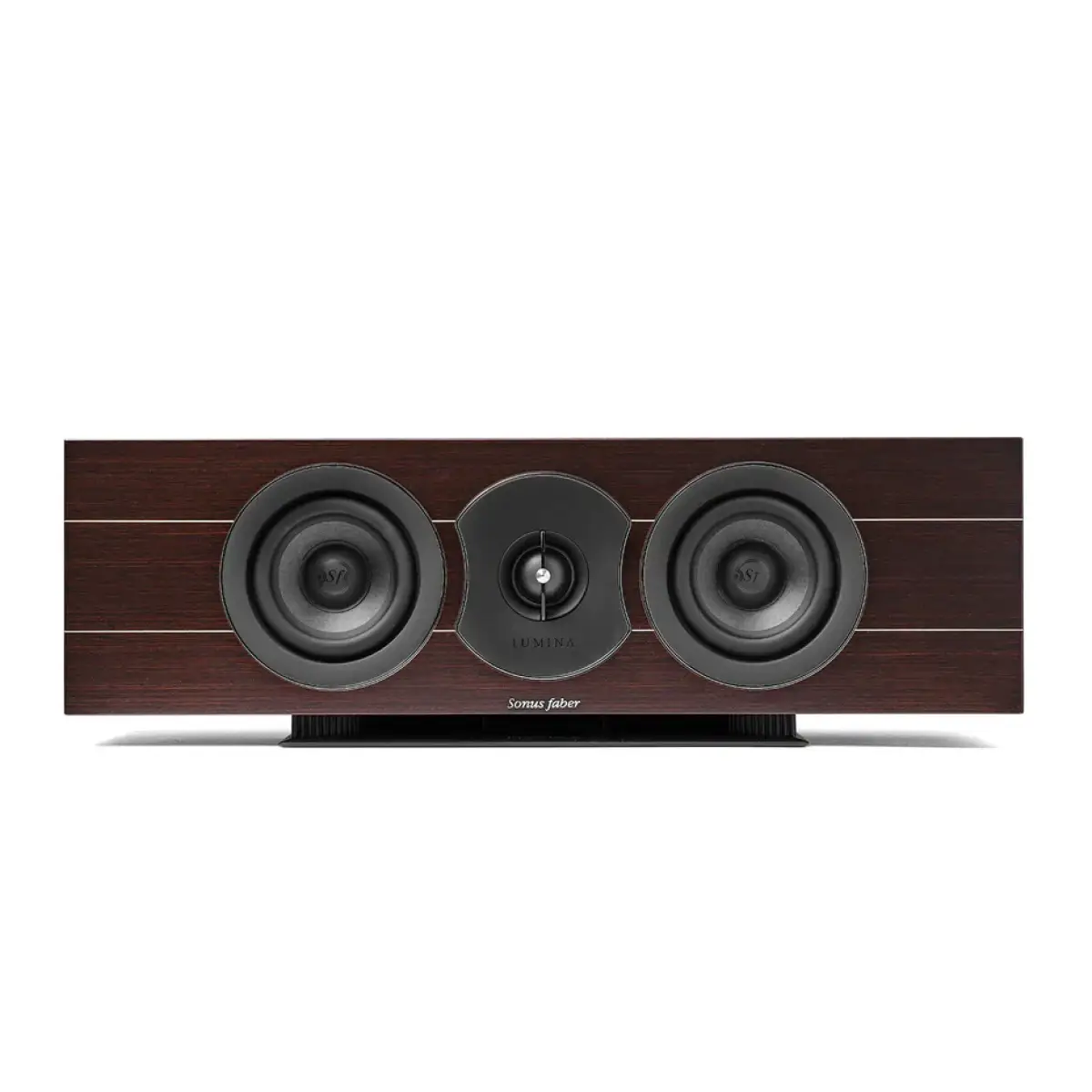 Among the materials selected for this line, what stands out is the Lumina’s multilayer wood of the front baffle and the real wood veneer, available in iconic premium finishes including Walnut and Wenge, both in matte finish with maple inlays. A third available option is Piano Black. All other surfaces of the cabinet are covered in Sonus faber’s iconic black leather.