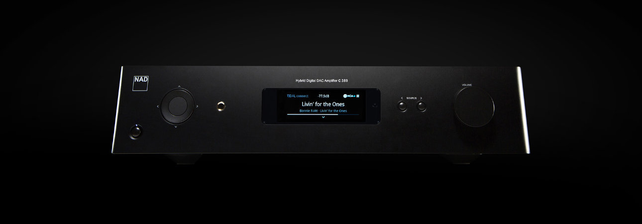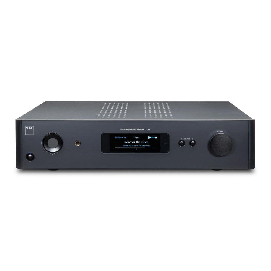 The NAD C 389 HybridDigital DAC amplifier can serve as the cornerstone of a high-performance audio system now – and for decades to come. Employing NAD’s proven HybridDigital UcD amplifier design and the same ESS Sabre DAC used in NAD’s acclaimed M33 BluOS streaming amplifier, the C 389 will deliver thrilling dynamics and exquisite detail from all your sources.