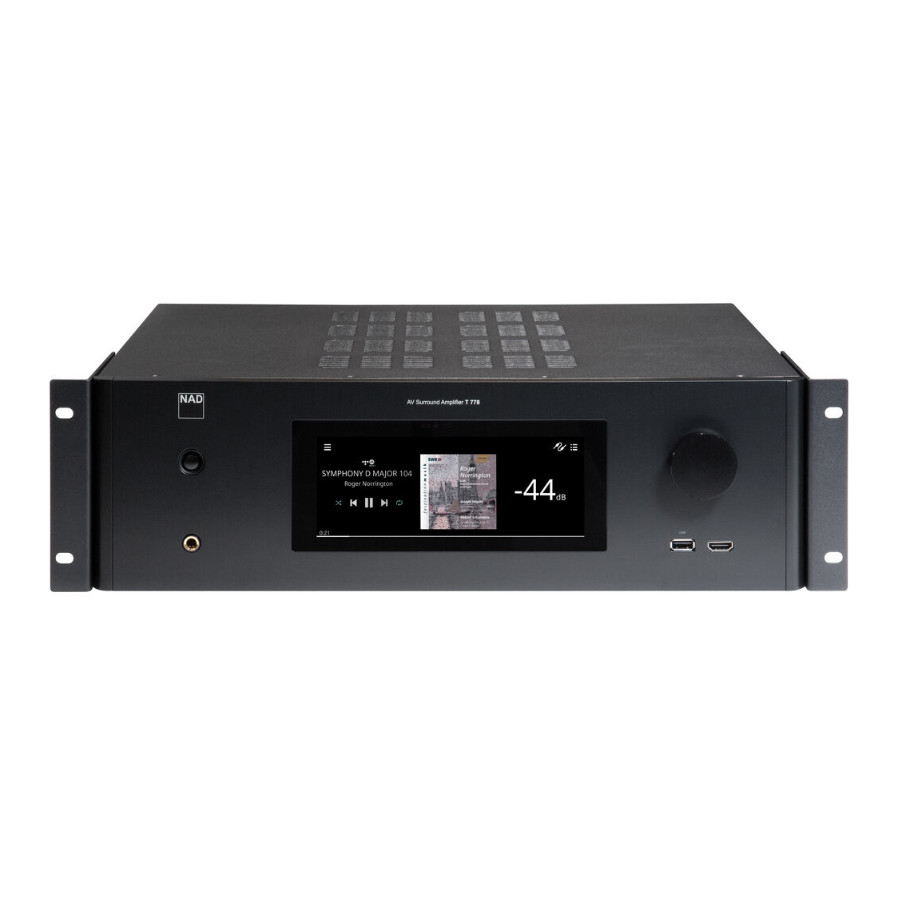 As with all NAD components, the company’s latest offering continues their ‘simple is better’ design philosophy. This sensible approach contributes to ease of use and maximizes performance where it counts. A perfect example is the striking new touch screen and ergonomic refinements that simplify operation and ease of access. The T 778 features NAD’s legendary sound quality along with complete compatibility with all the latest features and formats to ensure lifelike music and movie enjoyment.