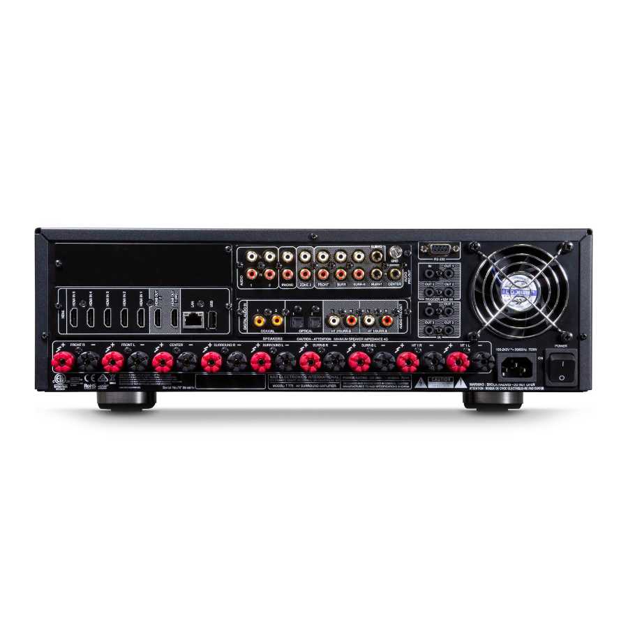 | Speaker I/O: | 2x Binding Post Pair (Front), 1x Binding Post Pair (Center), 2x Binding Post Pairs (Rear Surround), 2x Binding Post Pairs (Rear), 2x Binding Post Pairs (Height) |