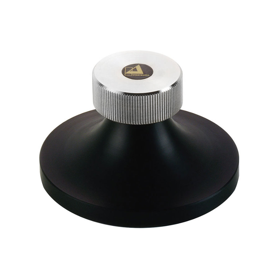 The Twister Record Clamp from Clearaudio features an adjustable screw-down design that progressively tightens to your spindle, pressing the record against the platter. This clamping action securely interfaces your LPs to the platter, reducing unwanted noise and vibration associated with poor record to platter interface. It is constructed of stainless steel and a highly damped space age polymer.