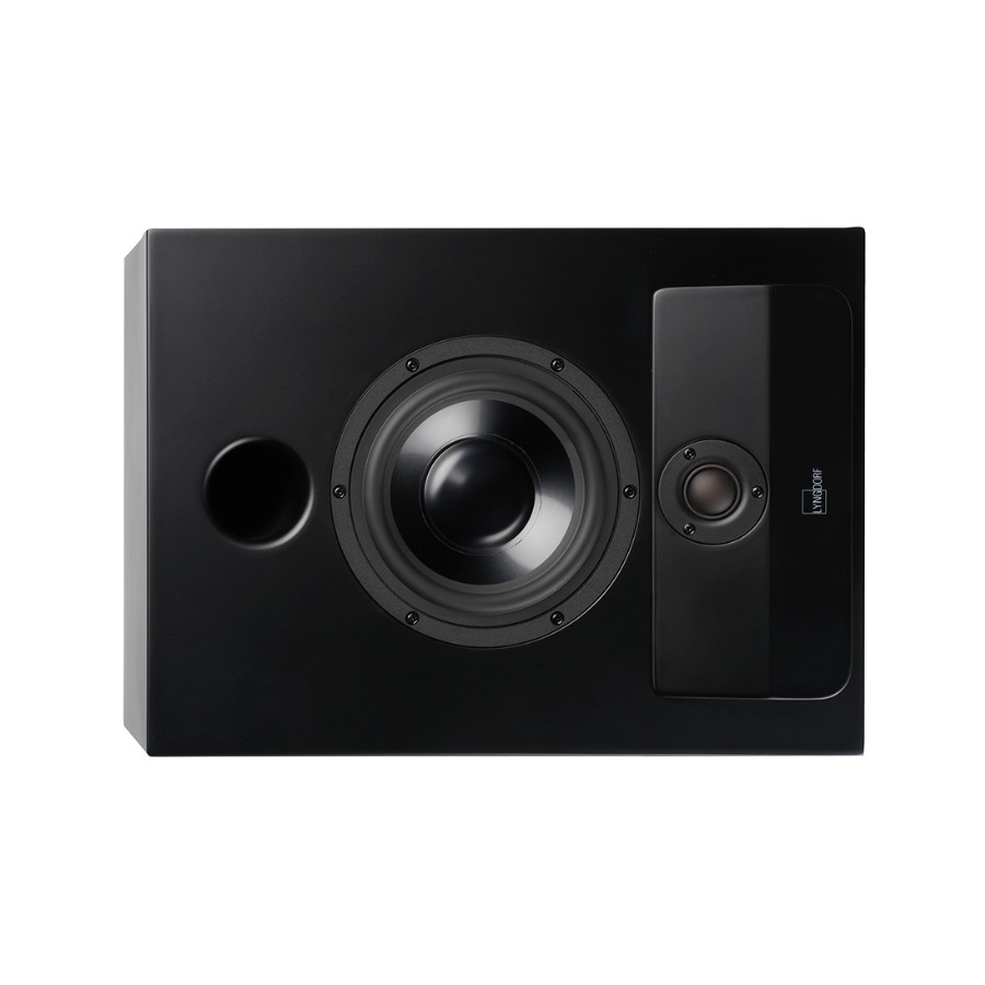 The Lyngdorf CS-2 is a compact full range loudspeaker specifically designed for discreet placement inside cabinets such as lowboards, sideboards and TV furniture. For this purpose, the CS-2 is constructed with the bass reflex front-ported, while the tweeter is mounted both elevated and angled. This special tweeter placement reduces sound diffractions from furniture edges inside a cabinet and also improves sound radiation toward the listening area.