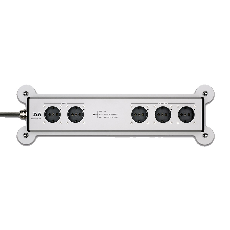 This distribution panel has two sockets for analogue and three sockets for digital devices and a massive bottom plate machined from solid aluminum. Sophisticated High-End systems may consist of a vast range of different components, and invariably consume very high currents. This places considerable demands on the method of distributing mains power to the individual machines in the system. T+A Power Bars are designed and equipped to suppress and effectively eliminate the various forms of interference.